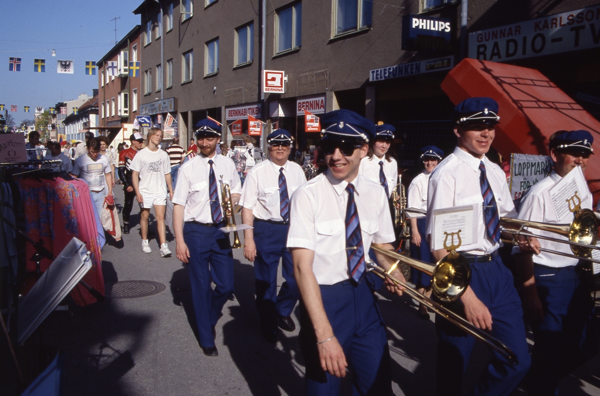 Arboga Blåsorkester marscherar på Nygatan under Arbogaträffen
