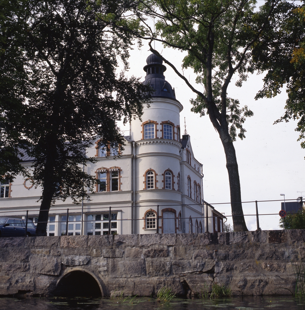 Brandstationen på Strandvägen, sedd från Arbogaån.