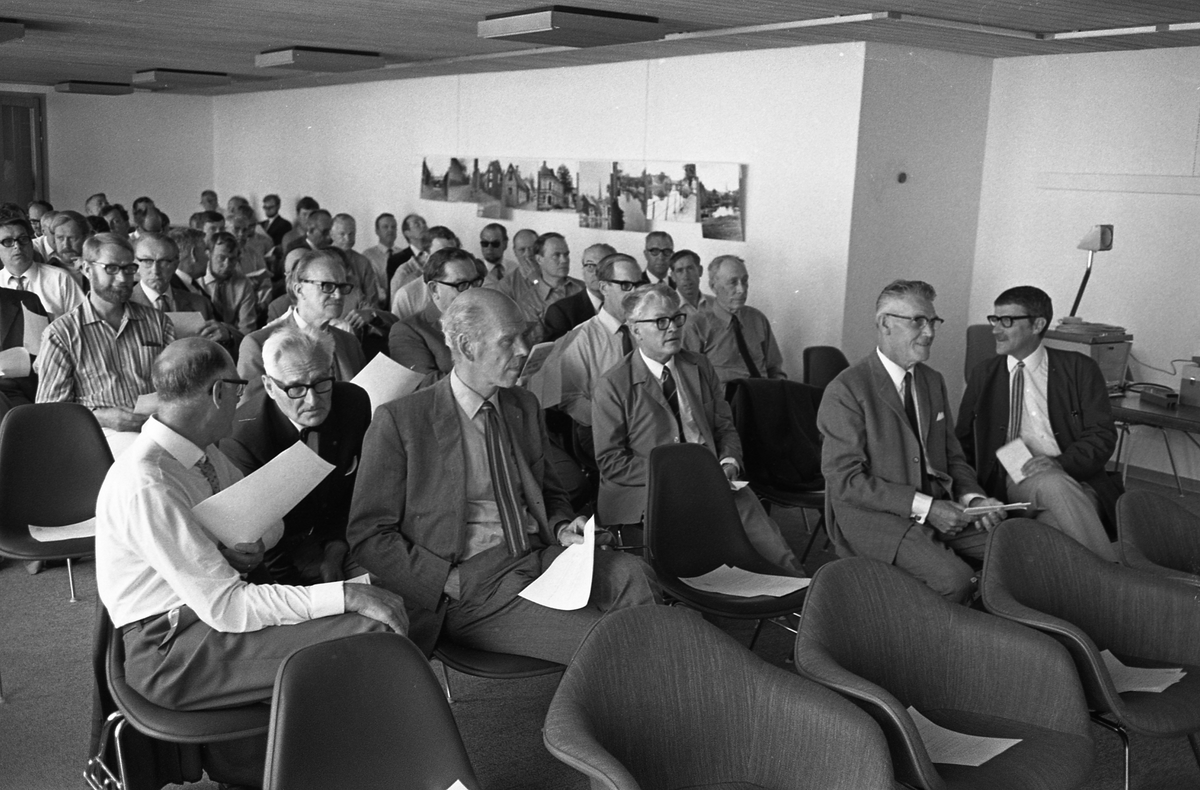 Bland männen ses Jonas Carlsson, stadsfullmäktiges ordförande