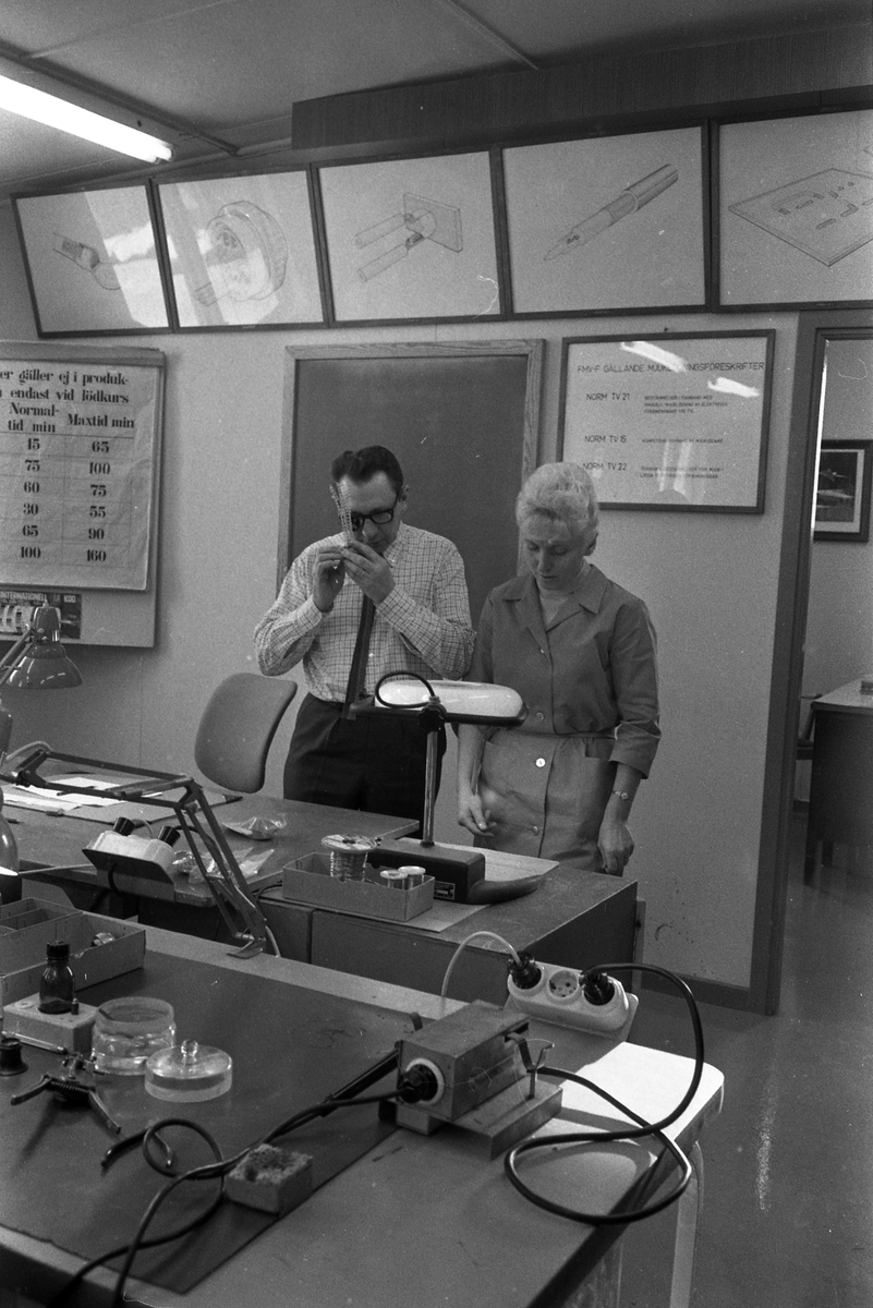 Bertil Jakobsson håller kurs i lödning på CVA. En kvinnlig elev står intill honom.