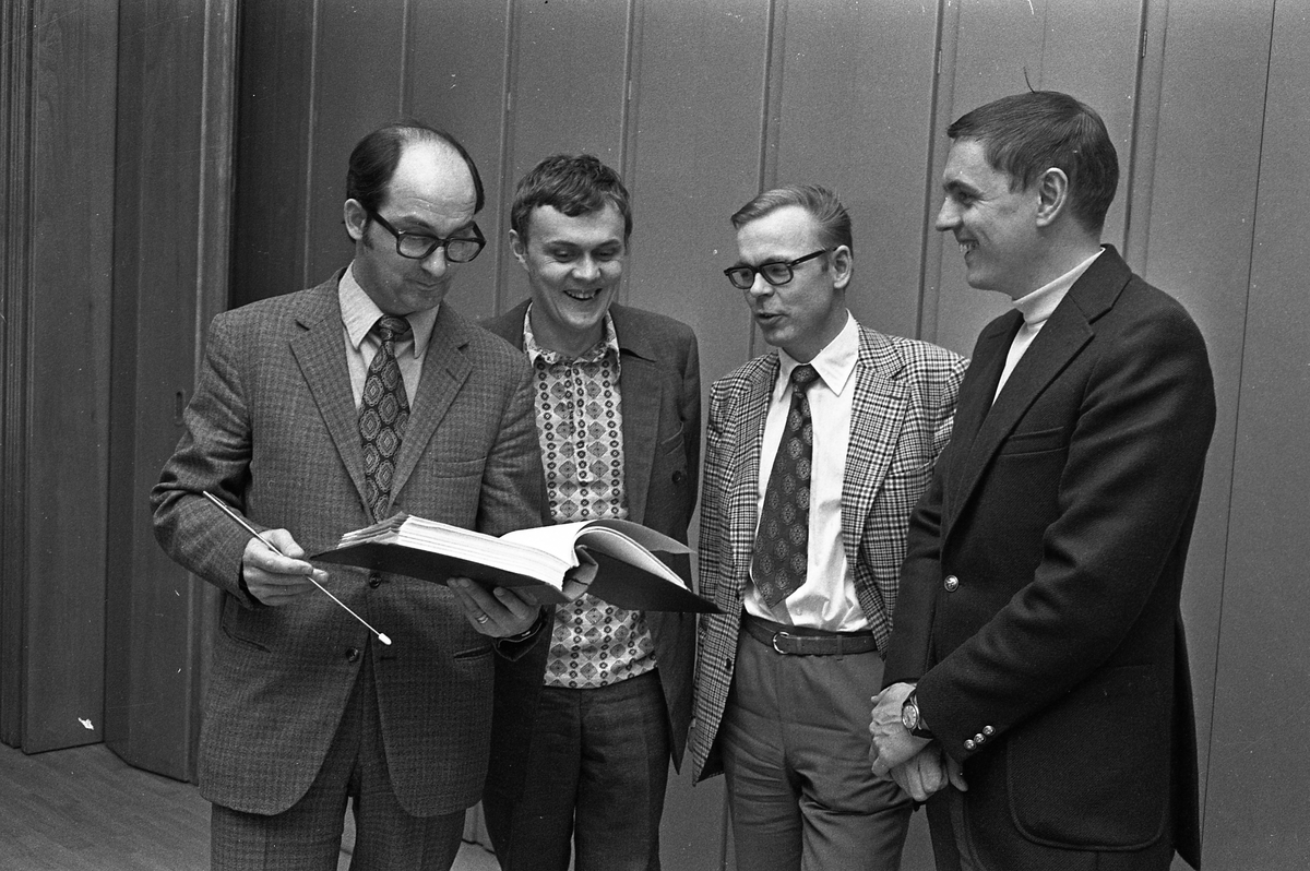 Från vänster: möjligen Knutsson, Jan Cedvén, Lars-Göran Oscarsson och Dag Degerman (de tre fullt namngivna är ingenjörer på CVA)
