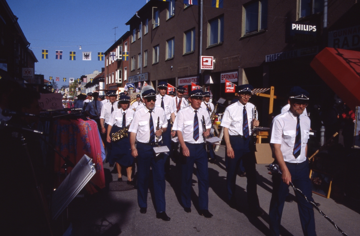 Arboga Blåsorkester marscherar på Nygatan under Arbogaträffen