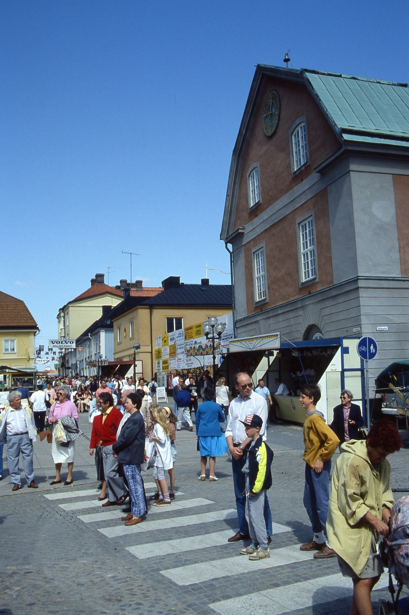 Publik vid dansuppvisning på Stora torget. Lotterier, tombola, torgstånd efter Kapellgatan.