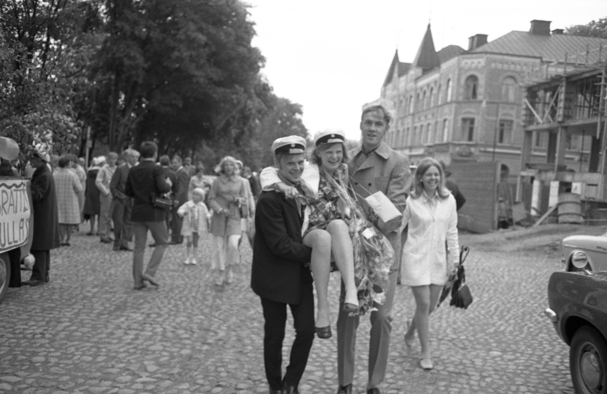Studentdag! Anders Holm (till vänster) och Bo Pilerud (till höger) bär Kicki Holm.