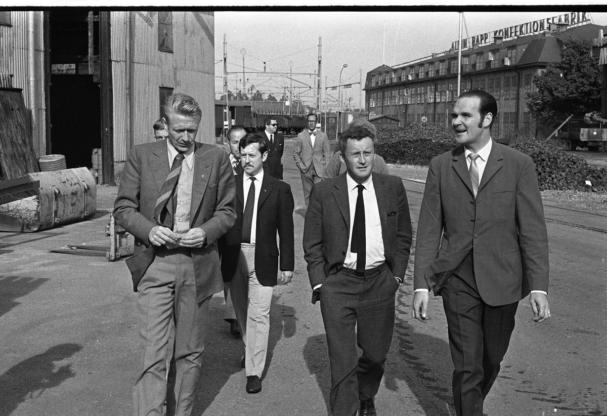 Från vänster: Olle Göransson, Kjell-Olov Feldt (handelsminister) och Göte Wahlfeldt på Arboga Maskiner.
