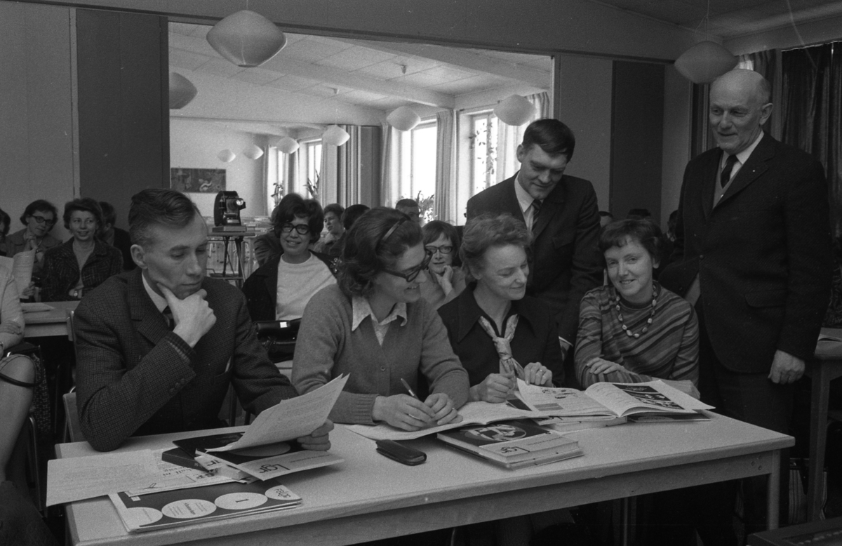 Stående, från vänster: Gunnar Bjurén och Bror Gustavsson (rektor).