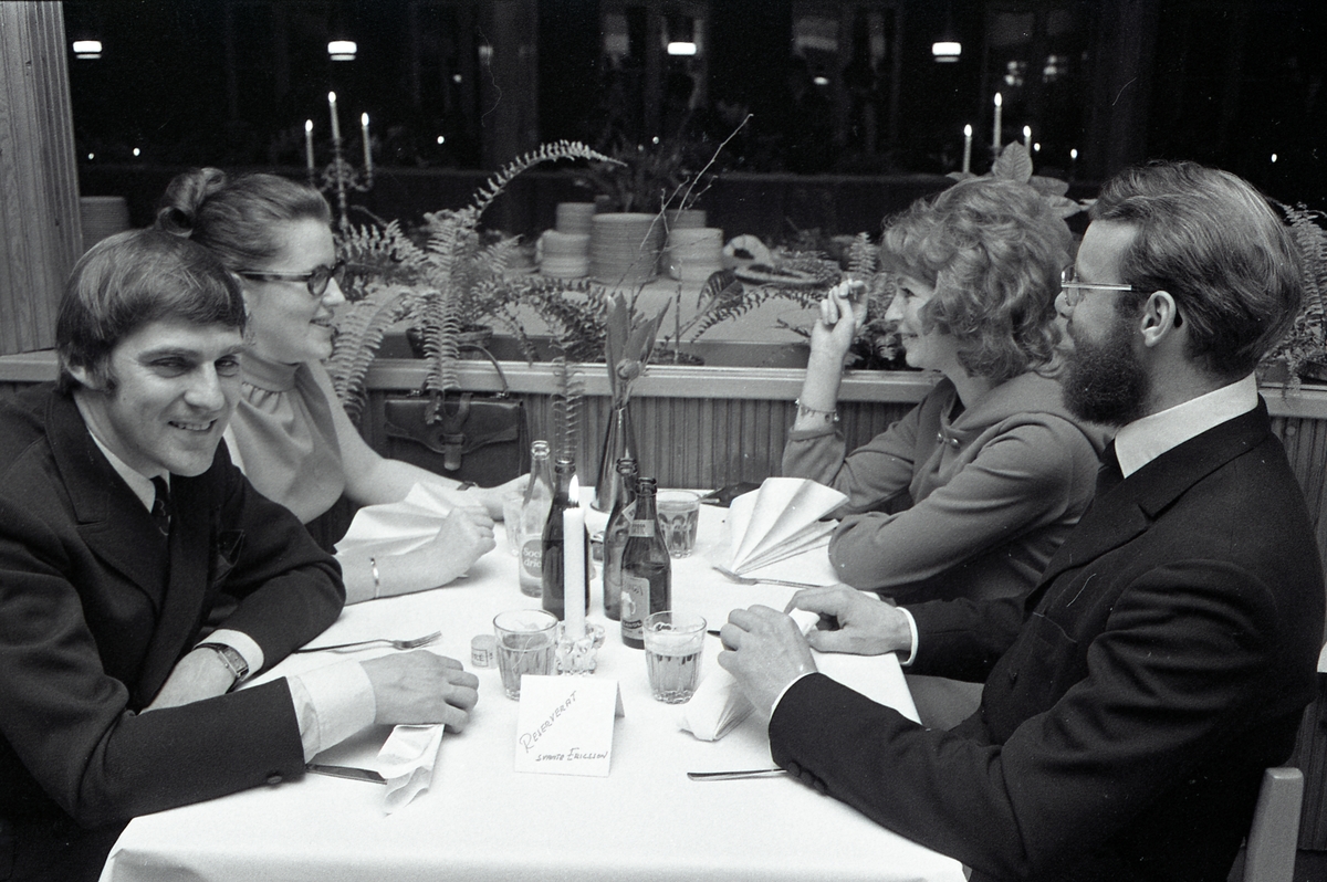 Vid dukat bord sitter, på vänster sida: Svante Eriksson och Astrid Löfdahl.