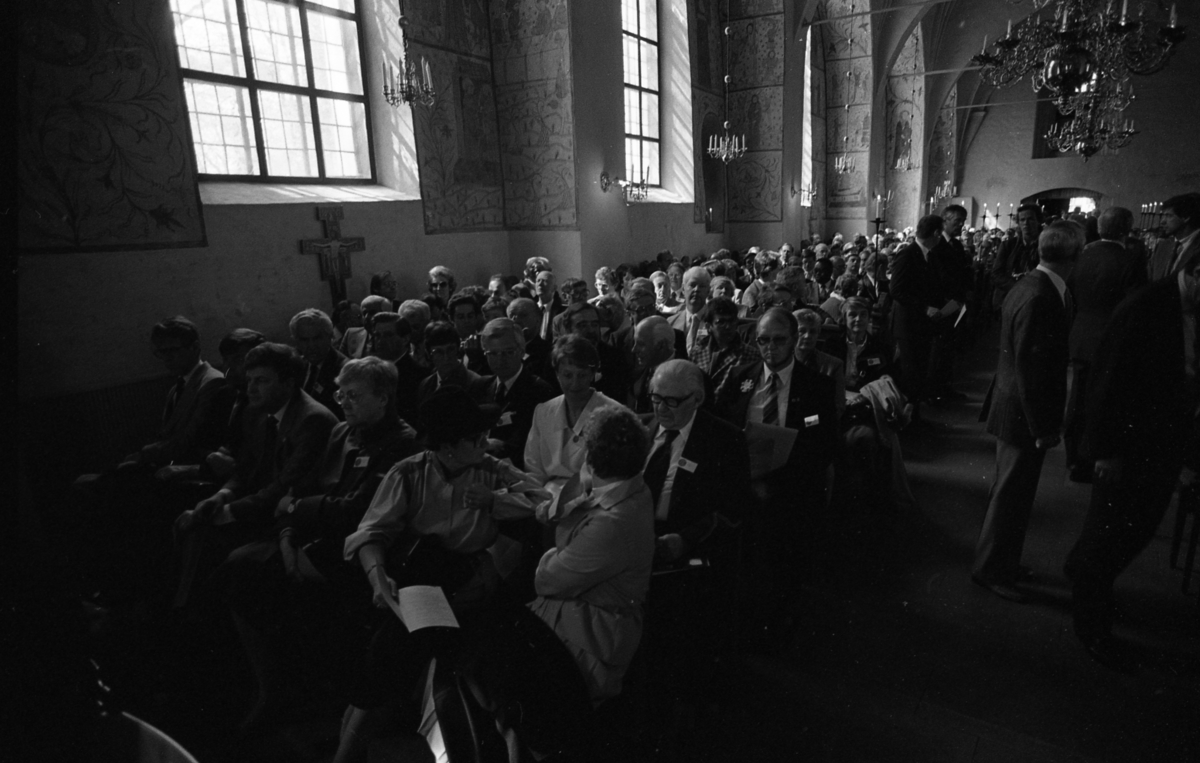 Riksdagspolitiker gästar Arboga med anledning av 550-årsminnet av Sveriges första riksdag. Riksdagsjubileet firas här i Heliga Trefaldighetskyrkan.