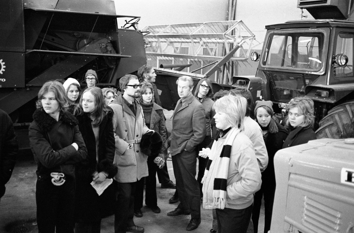 En skolklass är på studiebesök hos Nerikes/Närkes Maskin. De får titta på traktorer och skördetröskor.
