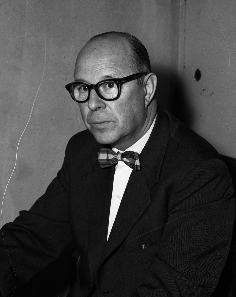 Karl Adolf Berg, expedit på herravdelningen hos Öhrman & Melander. Bilen är tagen i samband med att företaget firade 50-årsjubileum.