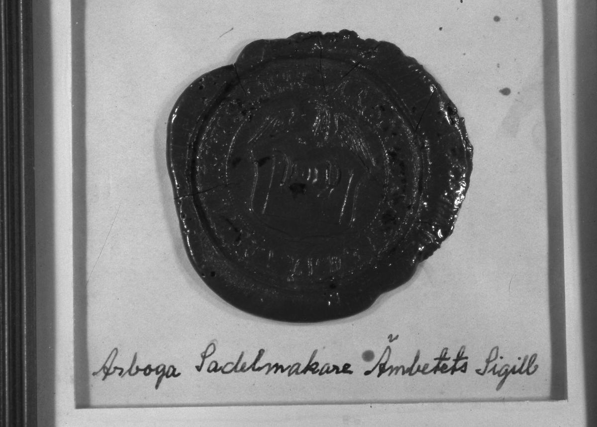 Sadelmakarämbetets sigill. Arbogautställningen.