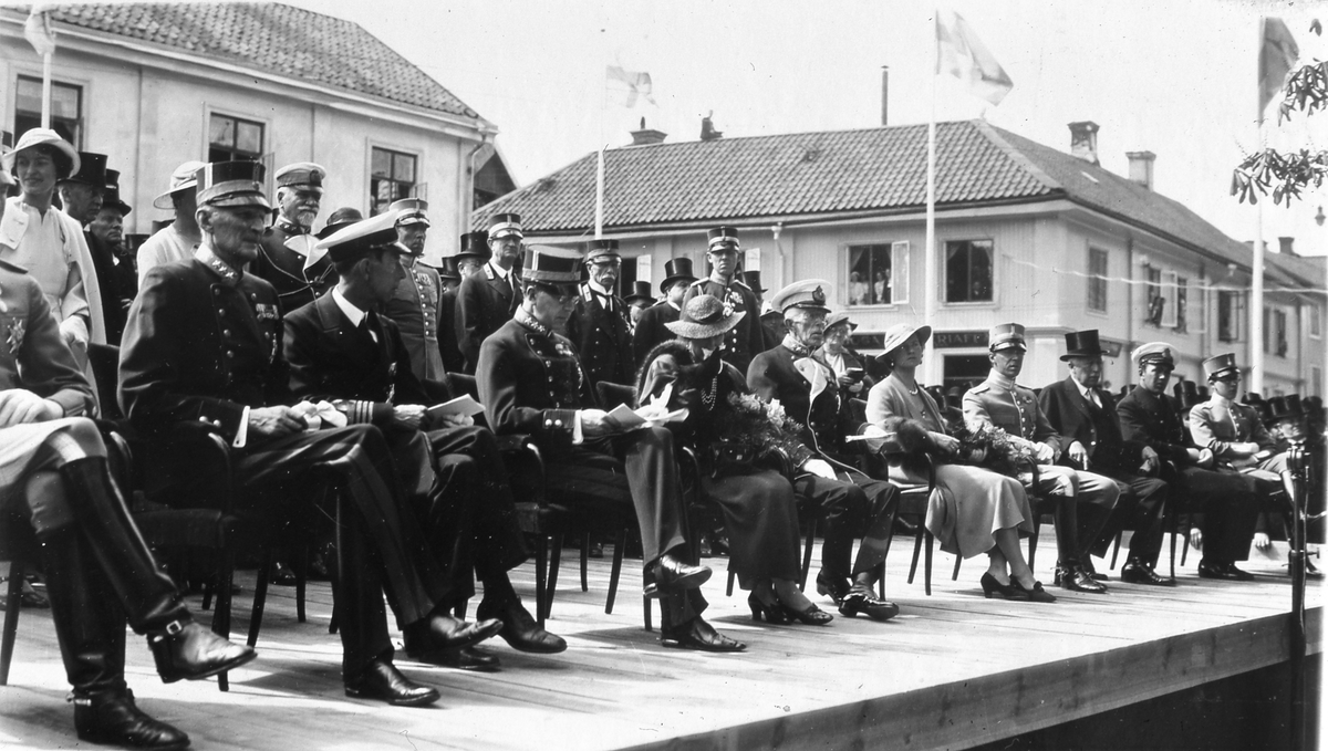 Kungahuset på podiet i samband med riksdagens 500-årsjubileum, som firas i Arboga.