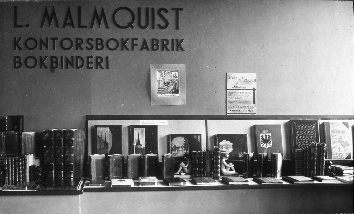 Arbogautställningen. Denna monter tillhör Malmkvists bokbinderi som ligger på söder i Arboga.