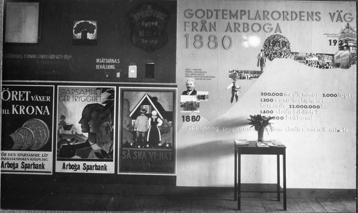 Arboga Sparbank och Godtemplaorden delar monter på Arbogautställningen.