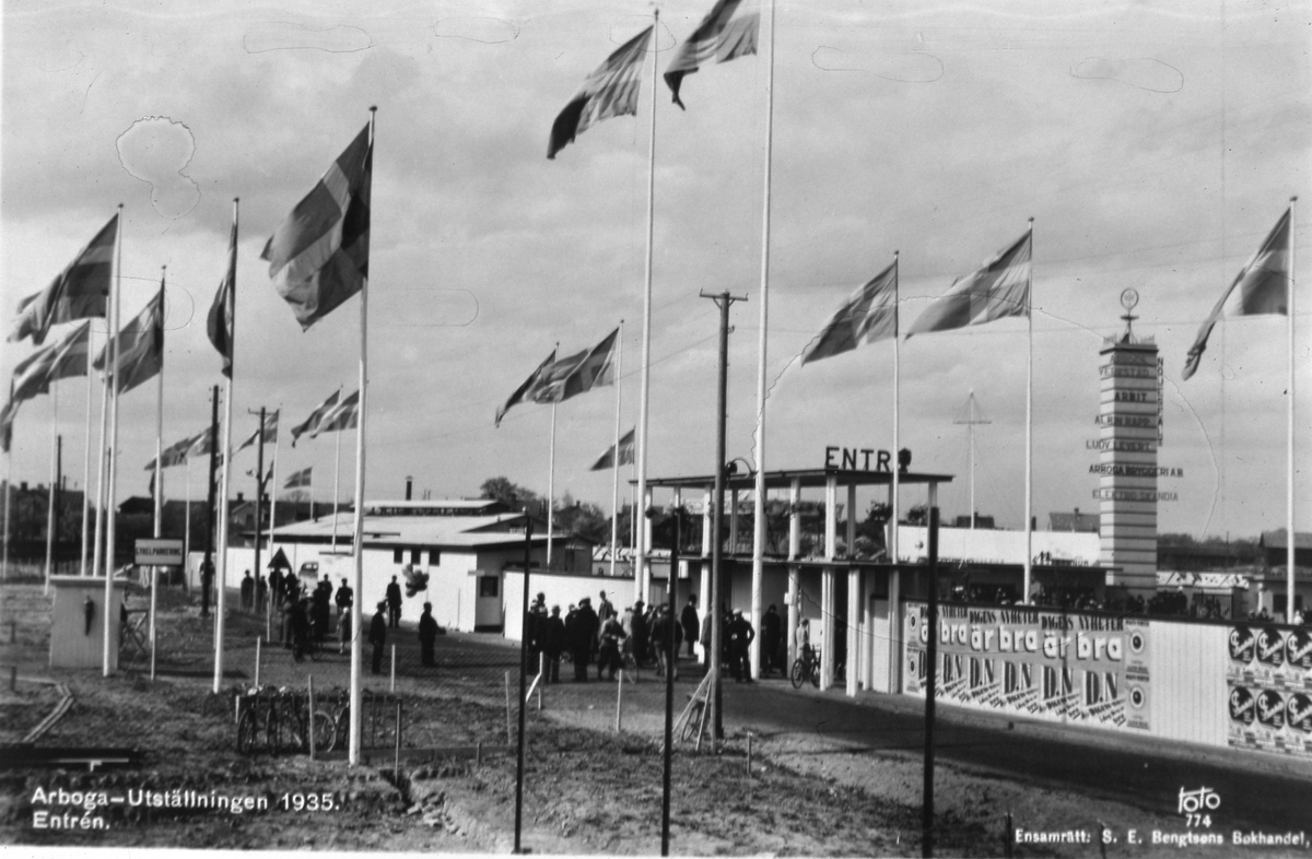 sverige, västmanland, arboga, giktringen, dragmansgatan, entrén till arbogautställningen 1935