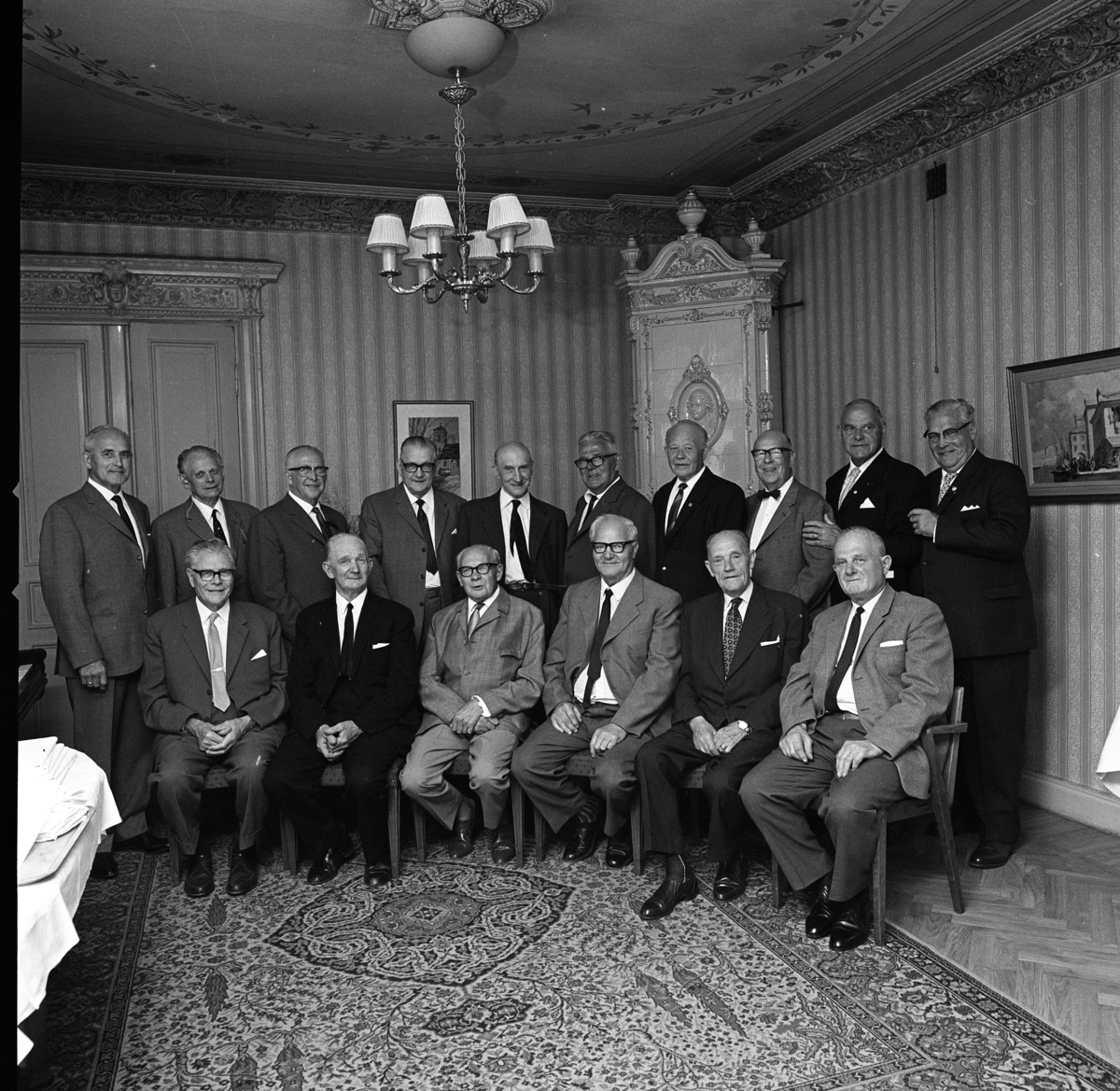 Bilden är tagen i salongen hos Georg Axelsson på Nygatan 38 E. I hörnet står en kakelugn med en bild föreställande Carl von Linné.