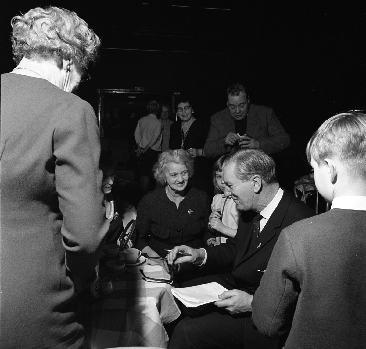 Arbogabor deltar, som publik, vid sändningen av Frukostklubben, ett underhållningsprogram som sänds på lördagsmorgnar. Sigge Fürst är ständig programledare. Här ses han samtala med publiken, som sitter vid runda bord och dricker kaffe.
