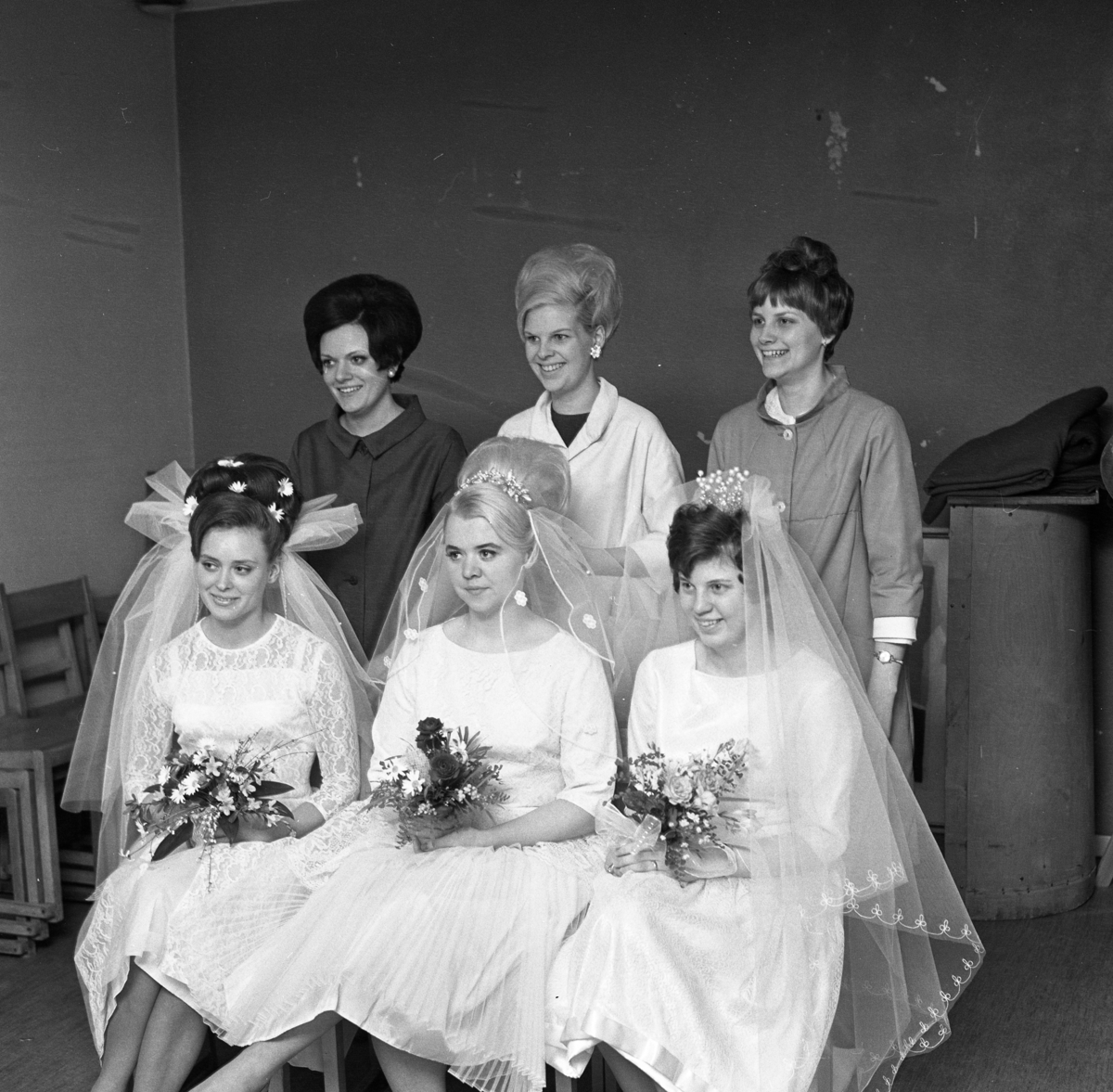 Gesällprov för blivande damfrisörskor. Uppgiften är att ordna en brudklädsel.