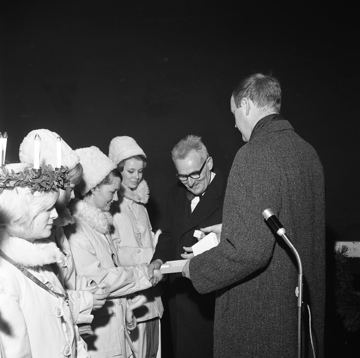 Luciakröning av stadsfullmäktiges ordförande, Jonas Carlsson.
