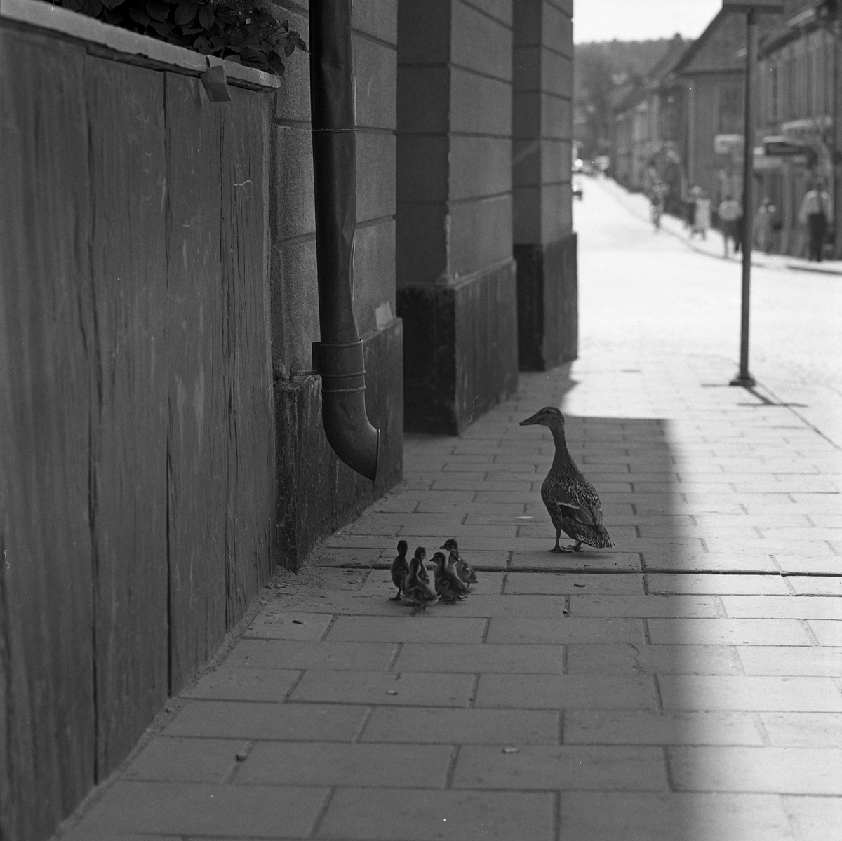 Andhona, med ungar, på väg till ån