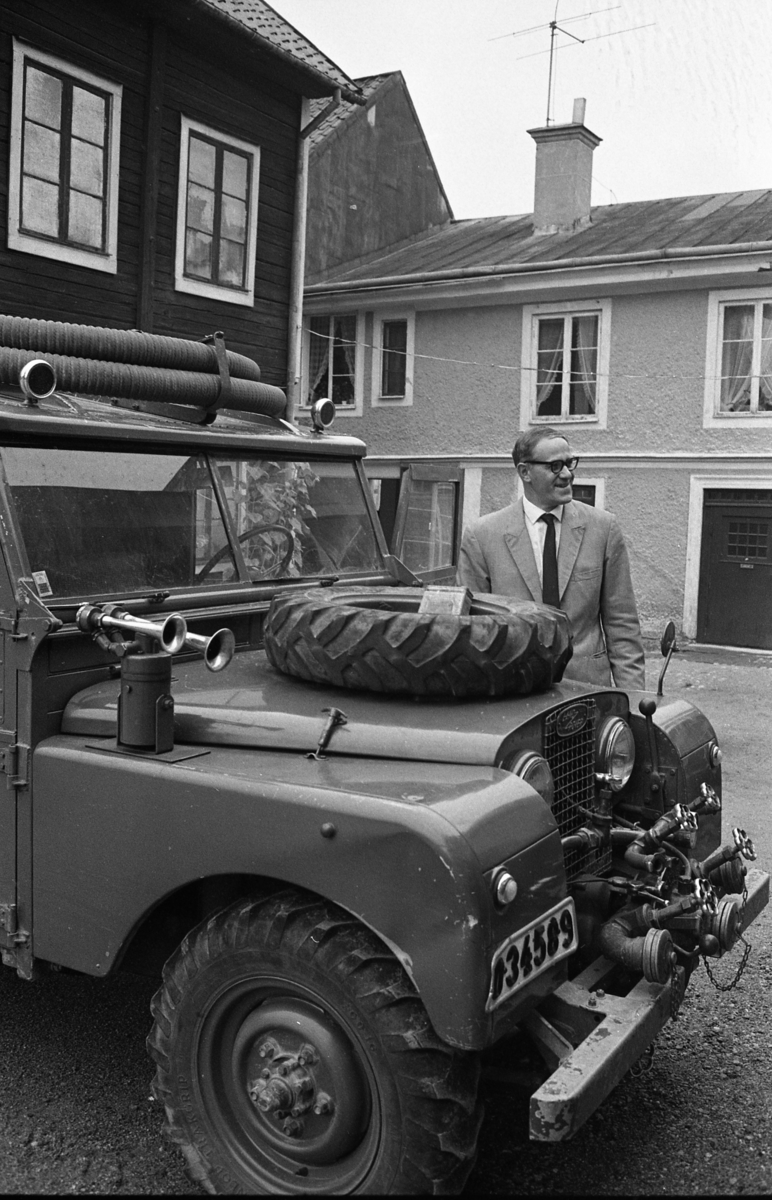 Polisman Sigurd Granberg inspekterar en stulen brandbil.