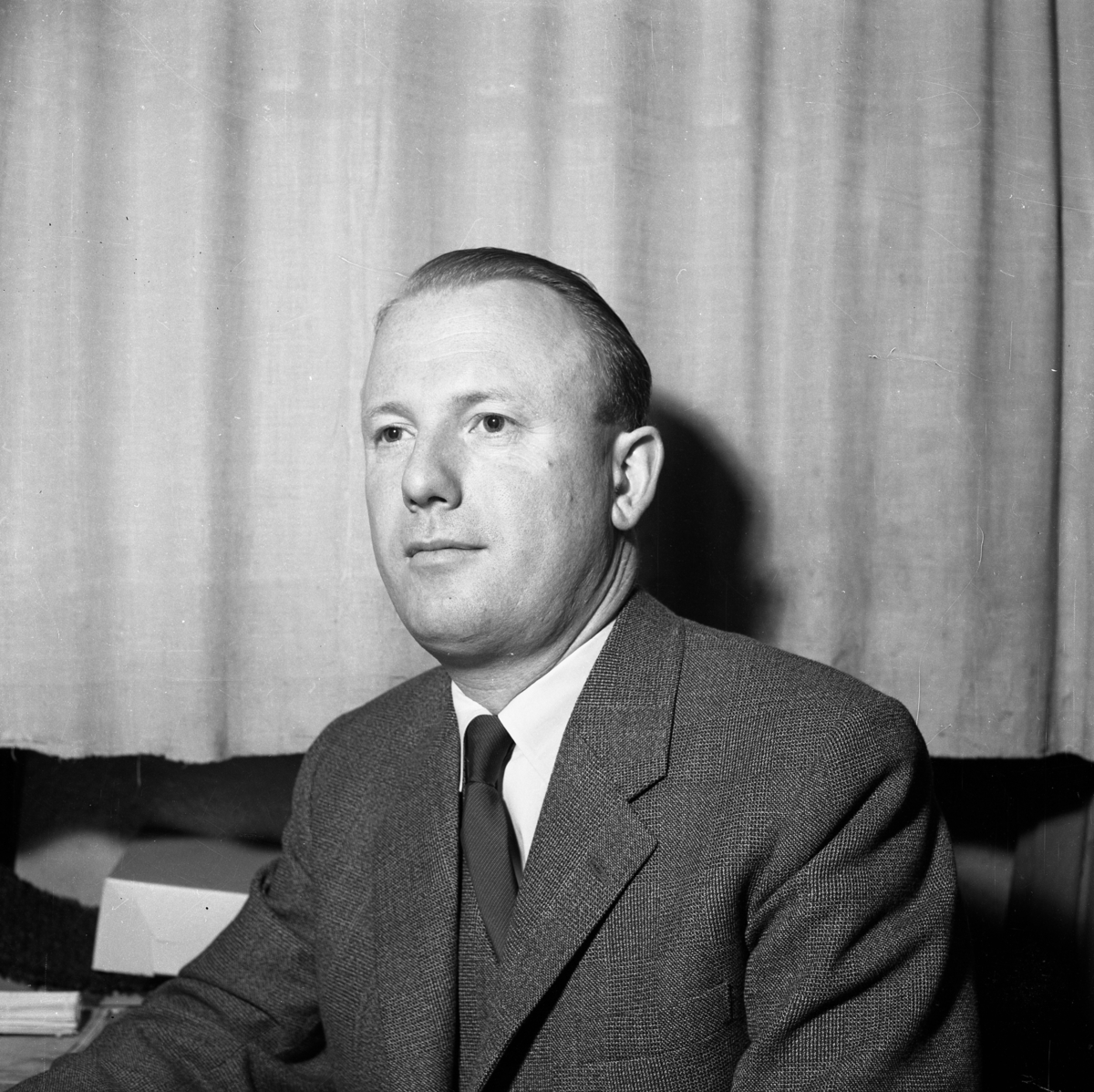 Sture Melander på Öhrman & Melander, en manufaktur-och klädaffär på Nygatan.