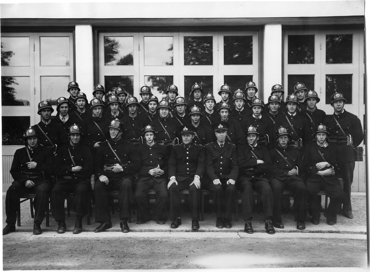 Gruppfotografi av brandmän iklädda uniformer och hjälmar.