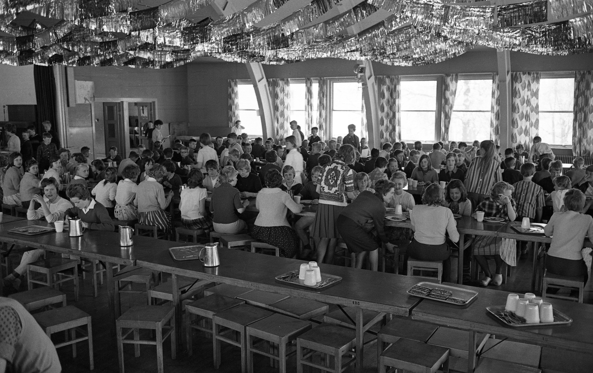 Skolbespisning med mat från AB Stig Dahlberg Storkök, 1961