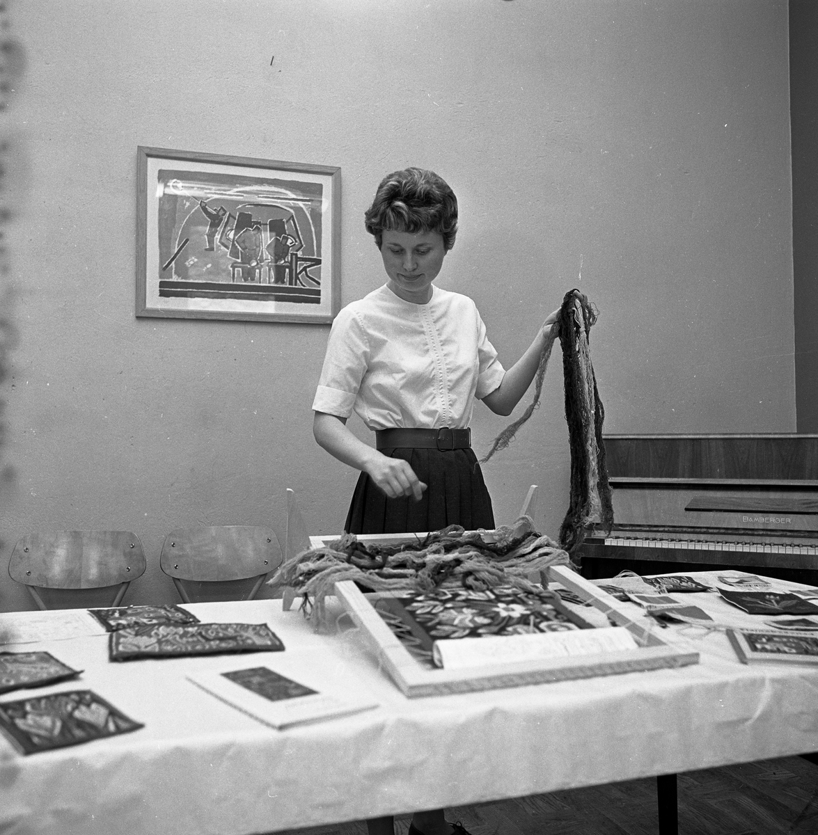 ABF har avslutning. En kvinna visar flamskvävnader.