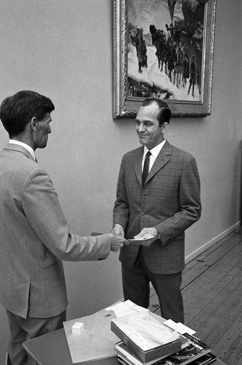 Titel: Arboga Tekniska Skola, examen. Utbildningsbevis delas ut.