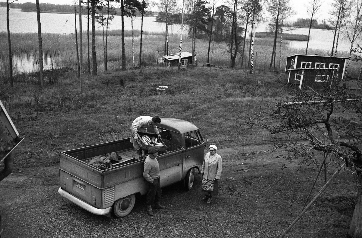 Bertil Johansson, från Gösens Fisk AB, hämtar en leverans hos Axel Gustafsson, Sjöfallet, Fredshammar
