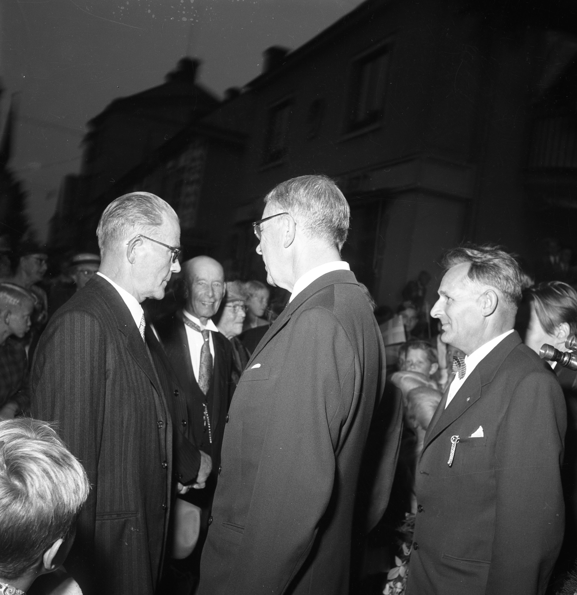 Konung Gustaf Vl Adolf gästar Arboga under sin Eriksgata. Här samtalar han med riksdagsman Iwar Andersson.