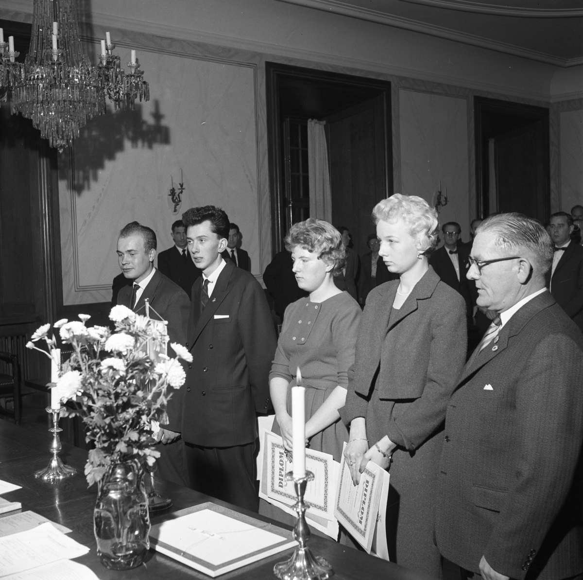 Hantverksföreningen delar ut mästarbrev till herrfrisörer och damfrisörskor. Platsen är kommunfullmäktigesalen på Rådhuset.