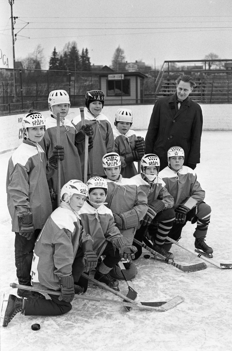 Stående, från vänster: Berth Hjort, Lars Nyqvist, Alf Dahlström och Gunnar Franzén. Tränare Ingwald Franzén.