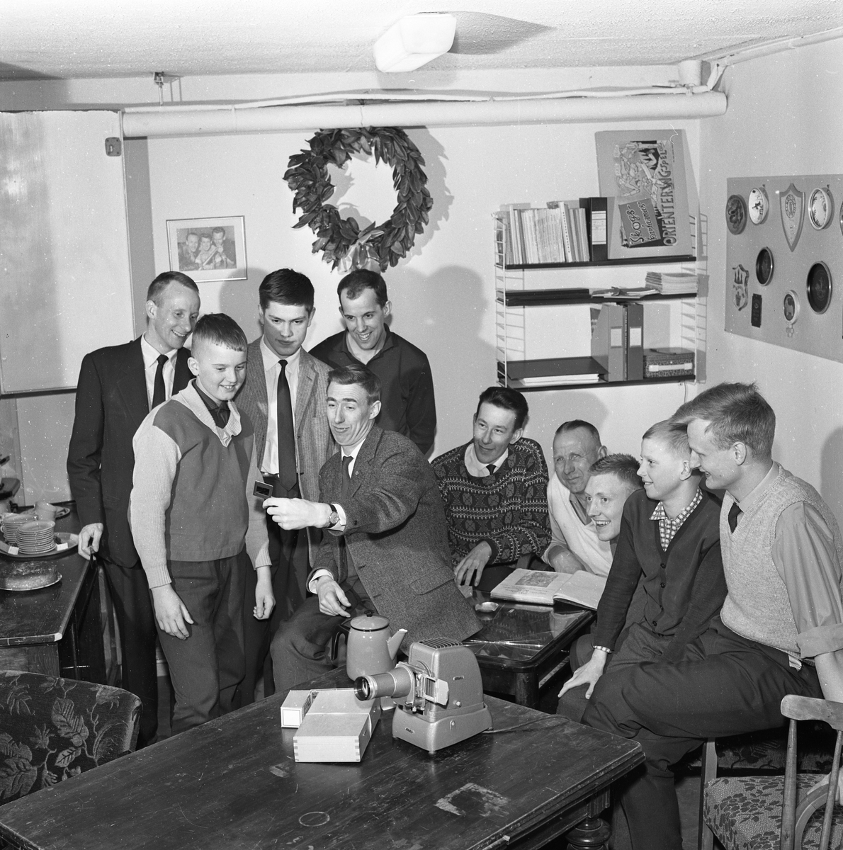 Medlemmar i Arboga OK tittar på diabilder