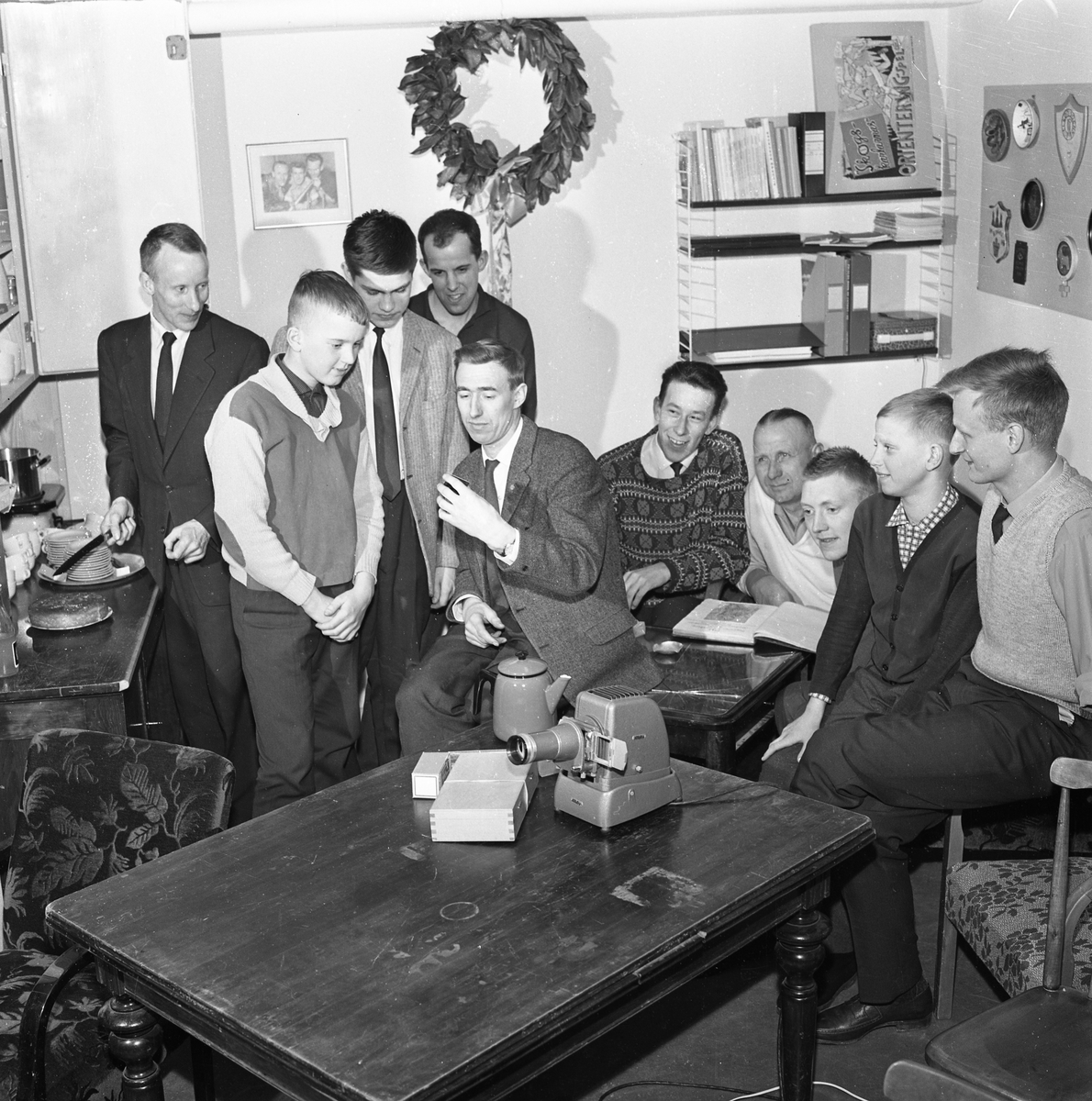 Medlemmar i Arboga OK tittar på diabilder