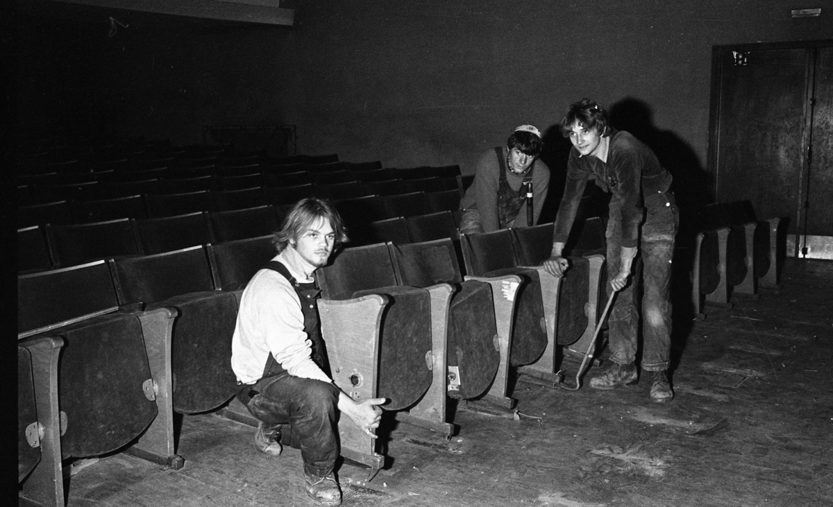 Yrkesskolans elever hjälper till med reparationer på Folkets Hus/Medborgarhuset. Biofåtöljerna ska tas bort.
