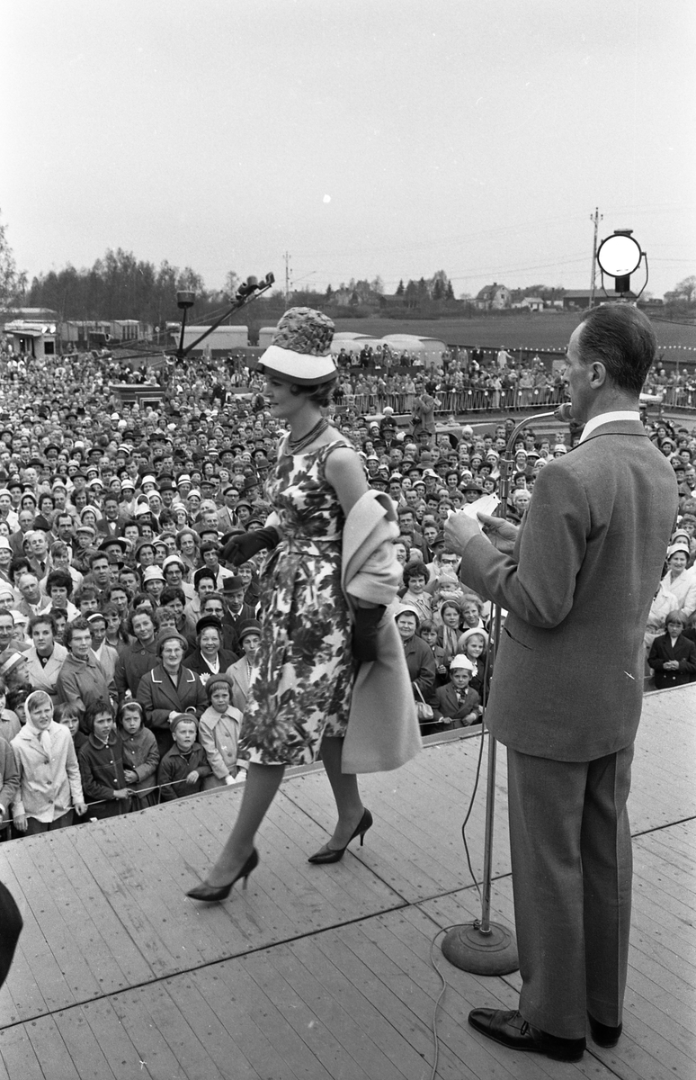Barnens Dag firas. Ett stort publikuppbåd har samlats för att se på modevisningen. Konfrencier är TV-kändisen Olle Björklund.