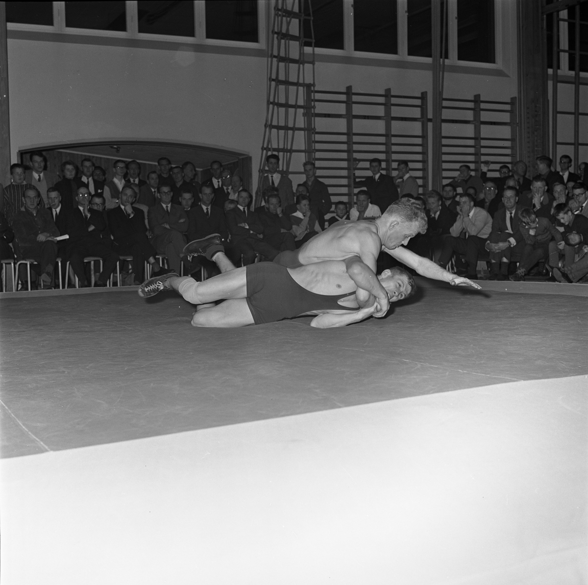 Tävlingen Fyrstadsbrottning. Deltagande städer: Arboga, Eslöv, Uddevalla och Falkenberg.