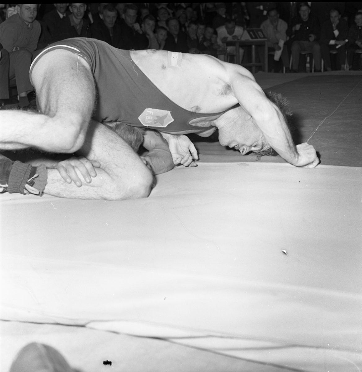 Tävlingen Fyrstadsbrottning mellan Arboga Atletklubb, Eslöv, Uddevalla och Falkenberg.