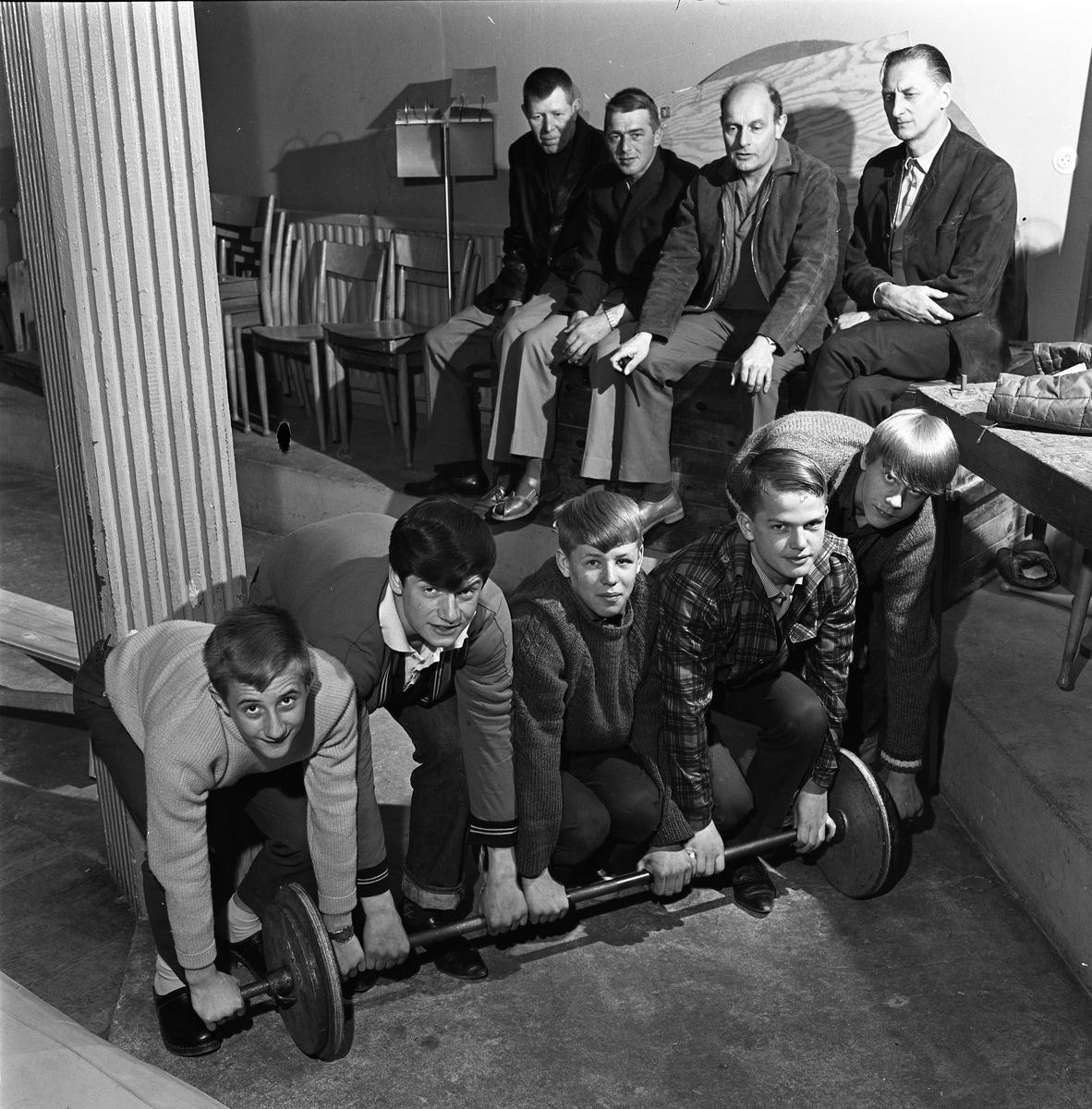 Bakom dem sitter, från vänster: John Andersson, Boy Hinrich, Sam Nilsson och Börje "Osten" Sjöberg.