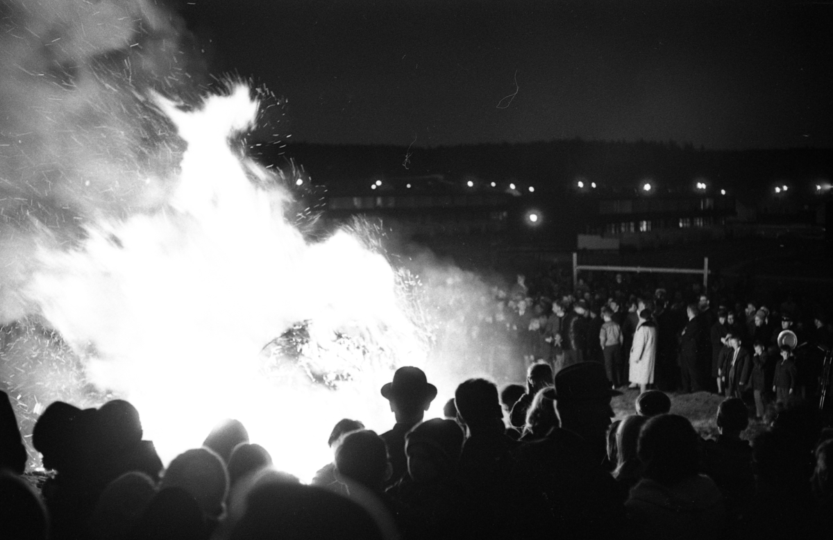 Valborgsmässoafton. Sista april. Vårens ankomst firas på Stenlöpet. Människor värmer sig vid brasan.