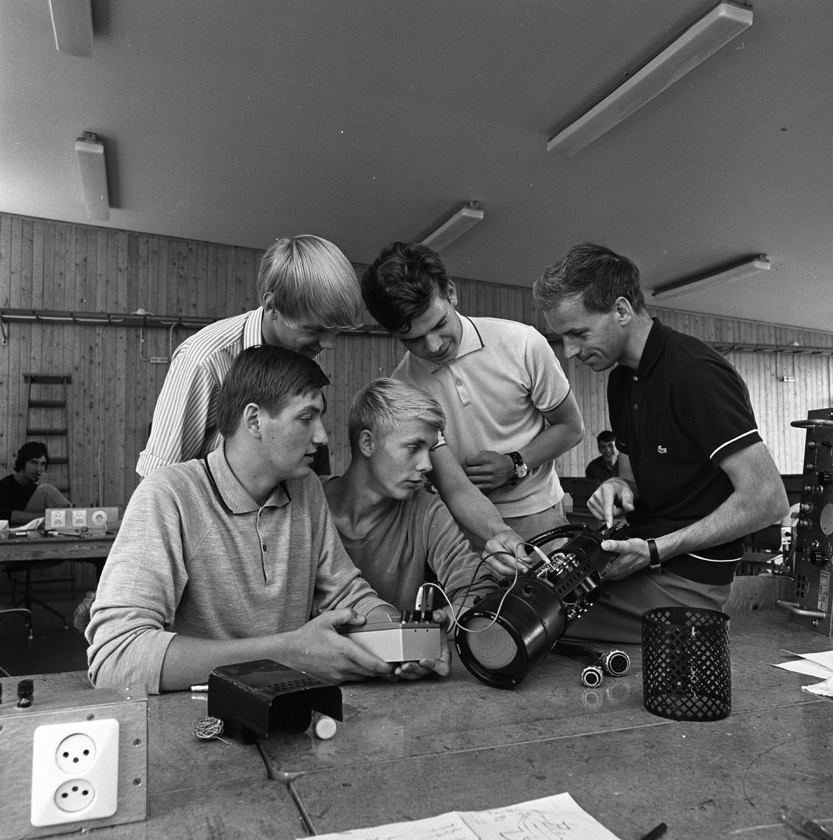Yrkesskolan. Lärare Åke West tillsammans med elever.