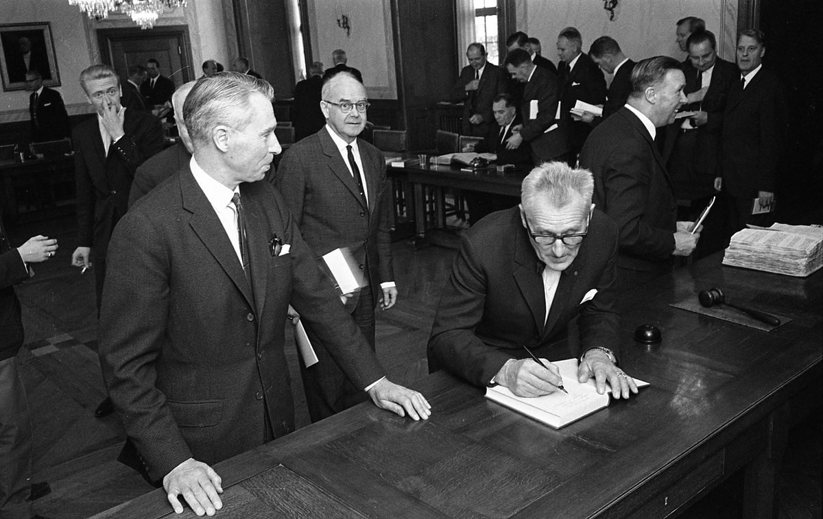 Statsutskottet besöker Arboga. Möte i fullmäktigesalen på Rådhuset.