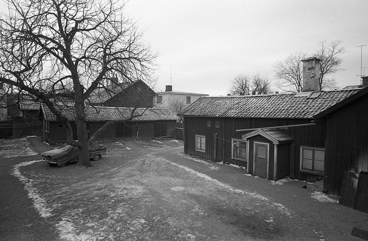 Exteriör av bostadshus, trä. Innegård. Trädgård. Kvarteret Tullnären, beläget mellan Storgatan - Trädgårdsgatan och Herrgårdsgatan - Paradisgränd.