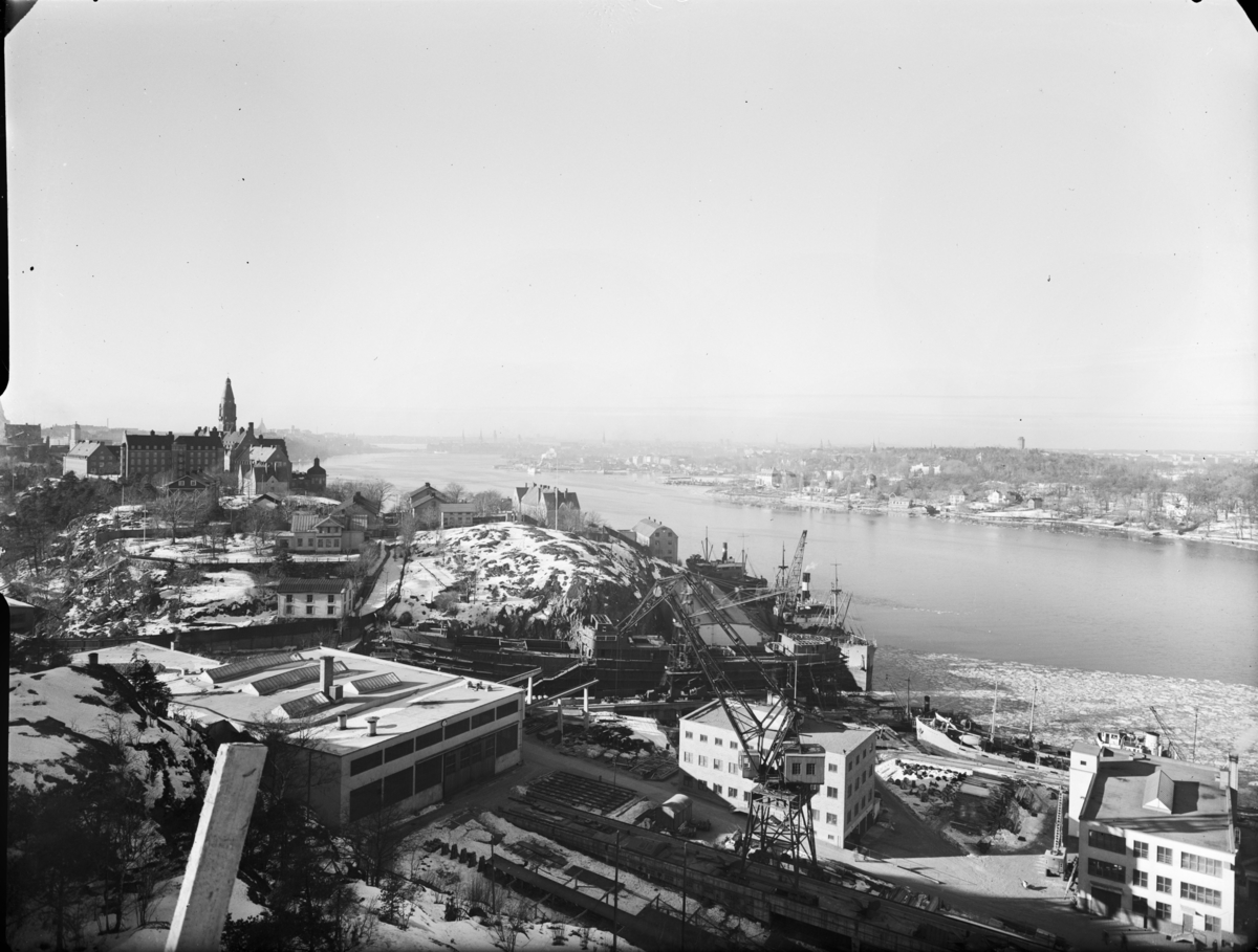 Vy över Stockholm från Finnberget med Danvikshem i förgrunden