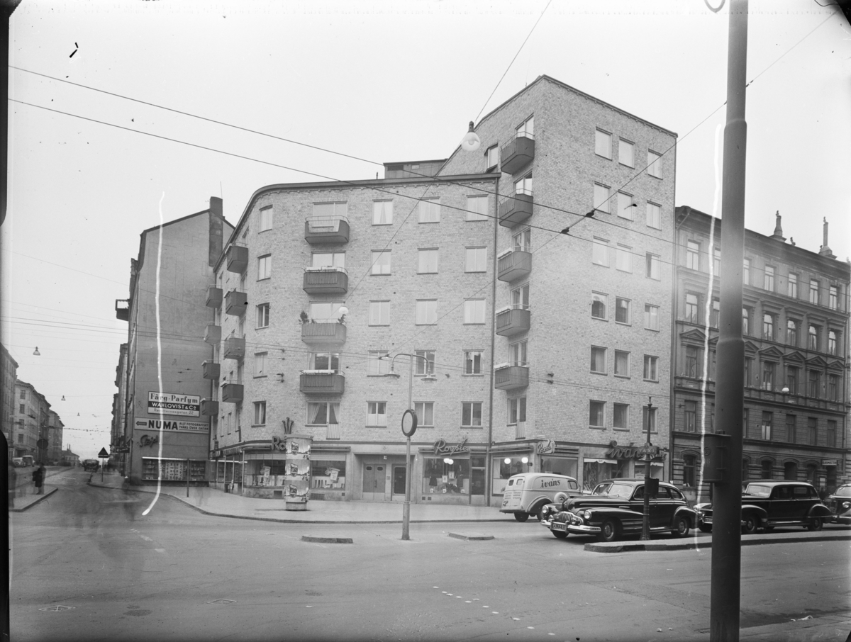 Flerbostadshus med butiker i gatuplan, Folkungagatan hörnet Renstiernas gata