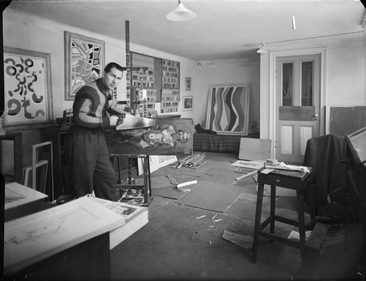Porträtt av konstnären Karl Axel Pehrson i hans ateljé