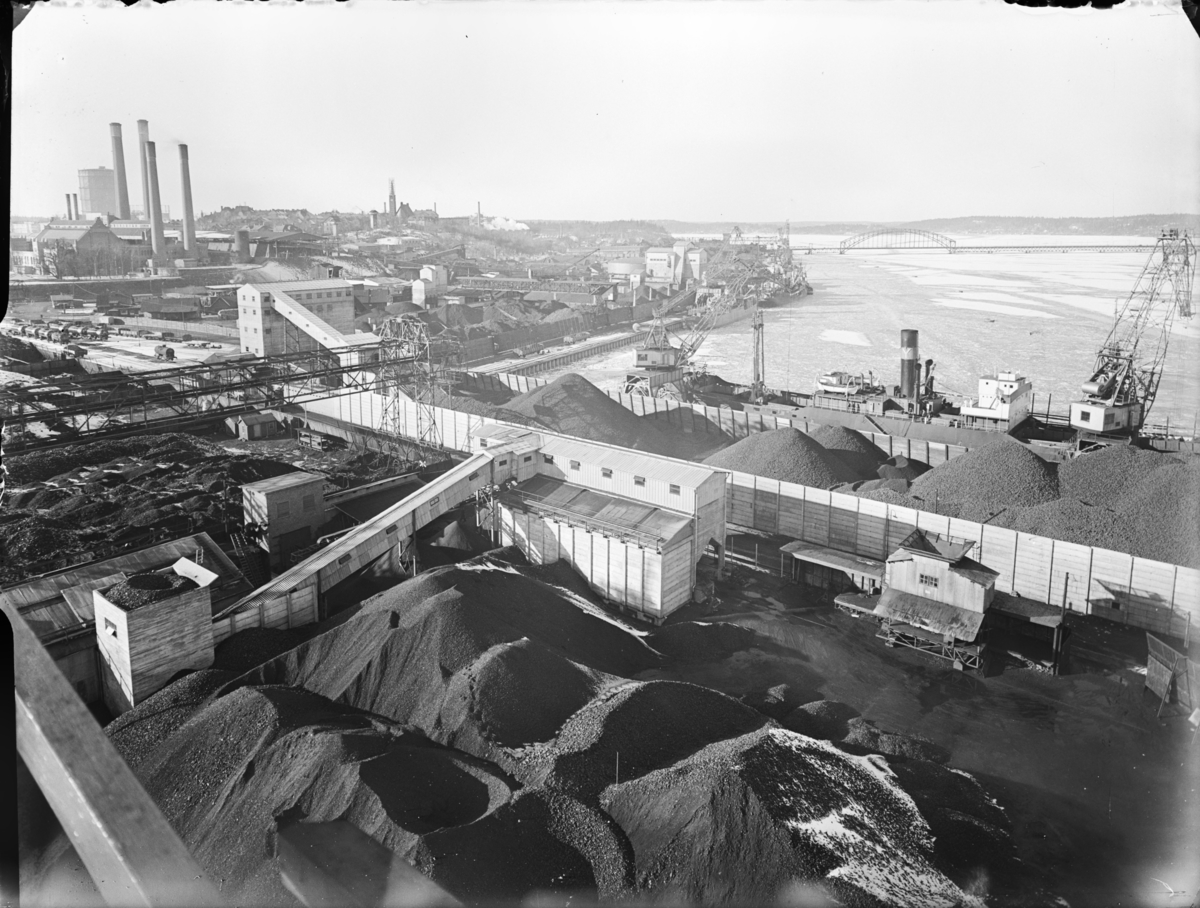 Utsikt över kolhögarna mot Hjorthagen och gasklockorna