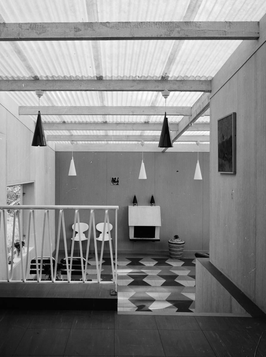 Rum med ljusinsläppande plasttak och mönstrat golv